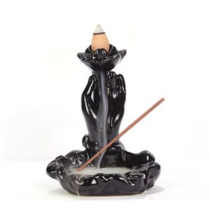 Підставка під пахощі Рідкий дим керамічна "Рука Будди" чорна